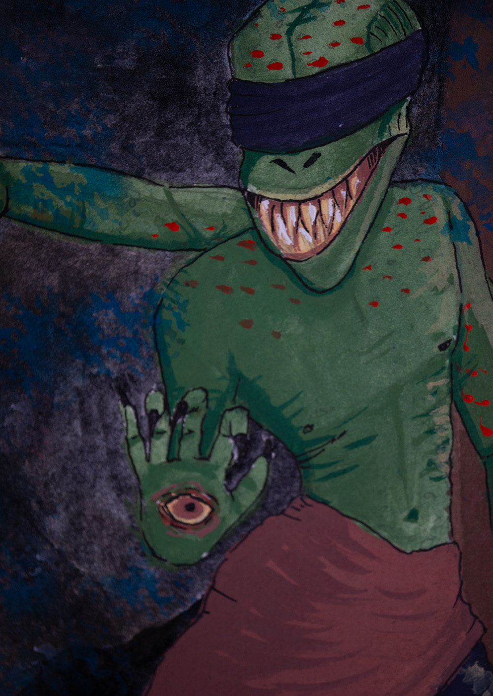 Acryl- und Gouachefarbe auf stabilem Papier. Grösse A5.