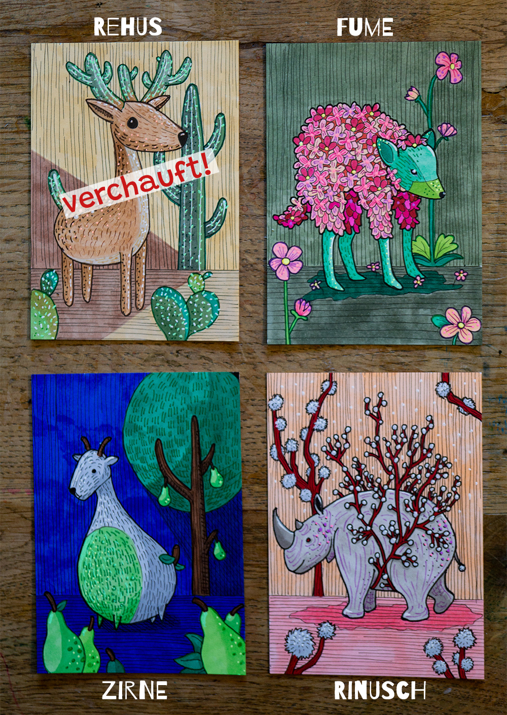 Es Mini-Bildli für’s Portemonnai. Die Zeichnige sind nur 7 x 10 cm gross, also öppe Sammelcharte Grössi.