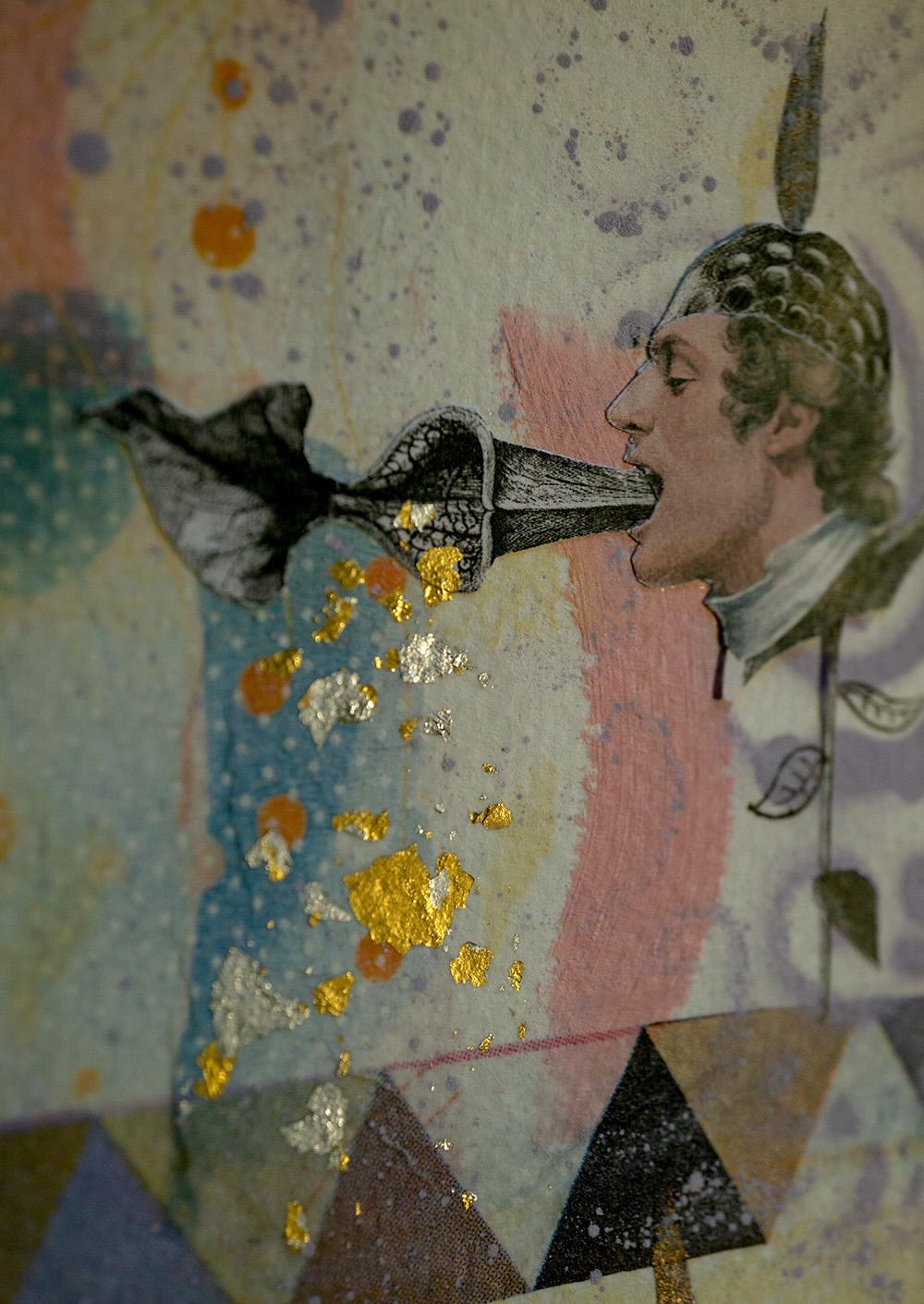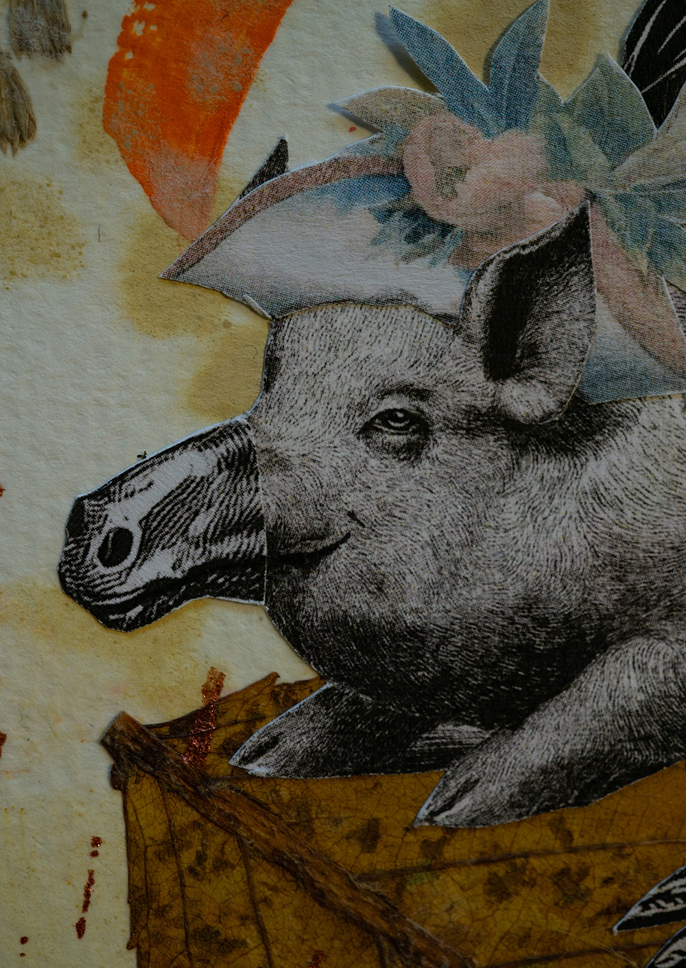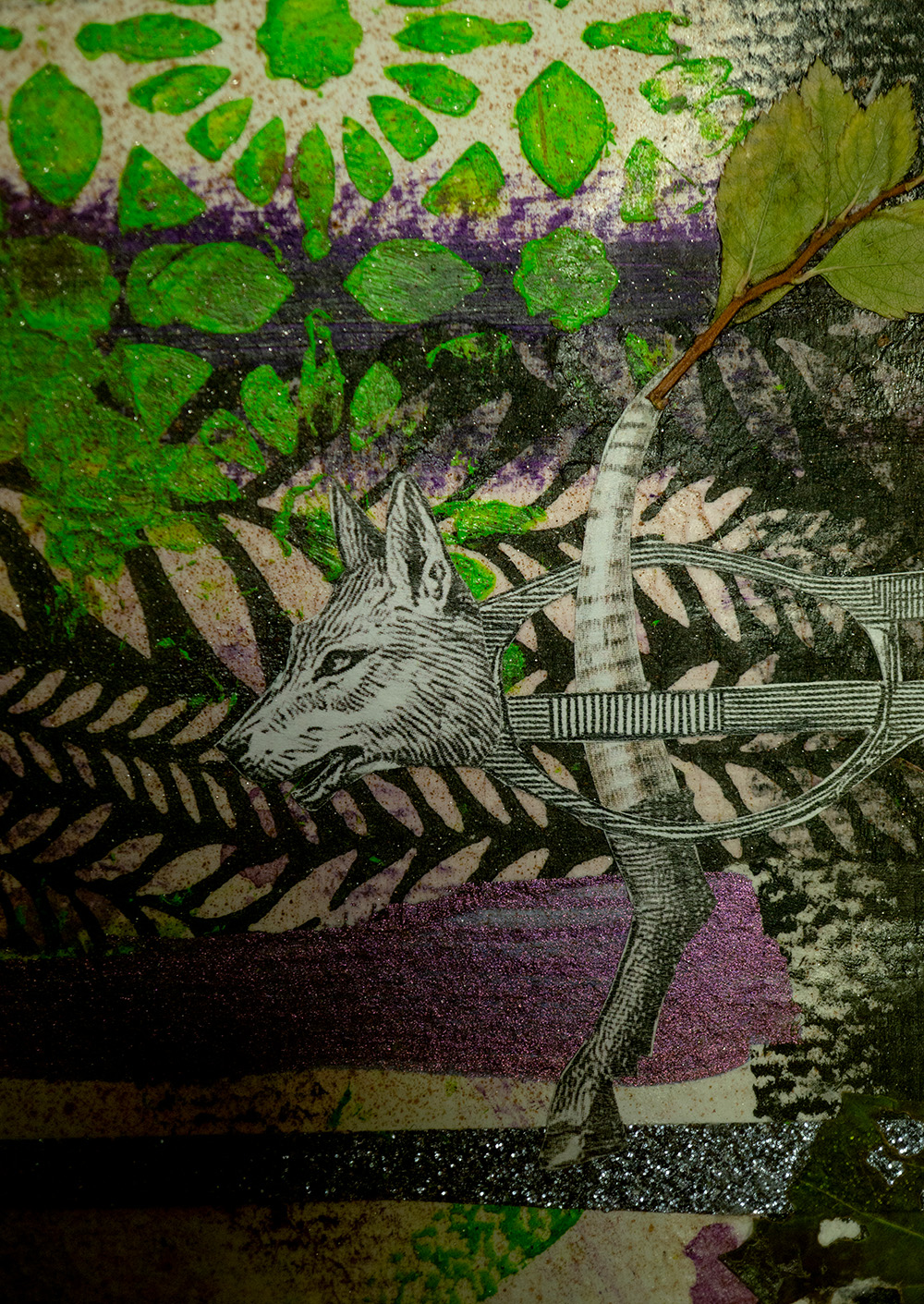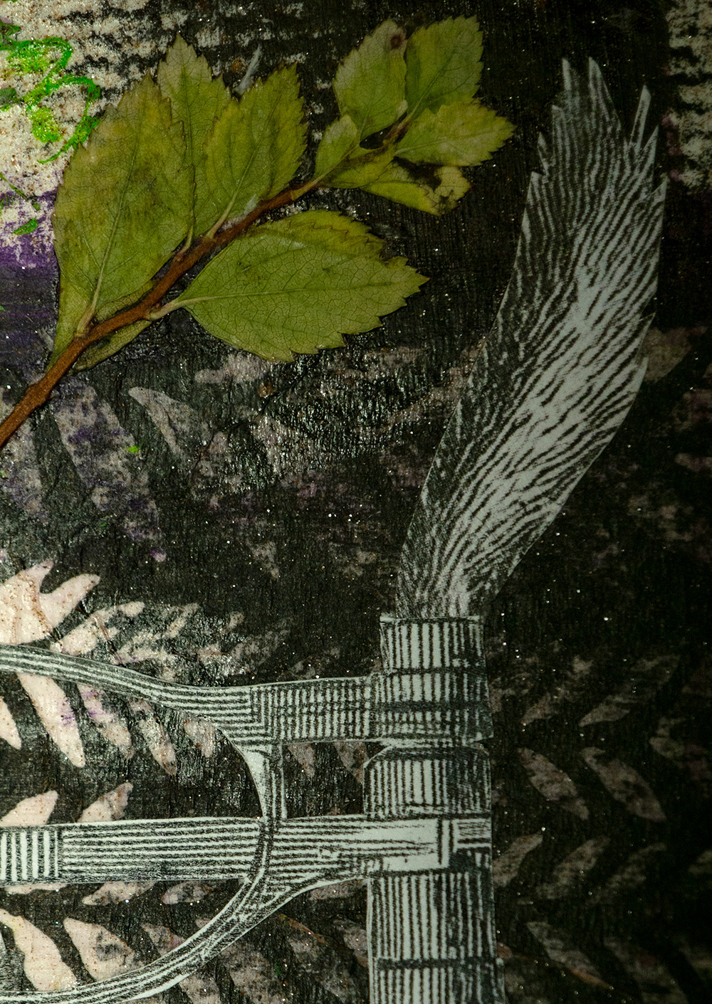 Hintergrund und Details gestaltet mit verschiedenen Techniken. Je nach Bild: Decoupage (Servietten-Technik), Filzstifte, Fineliner, Aufkleber, Gold/Silber Blättchen, gepresste Pflanzen und Tusche. Grösse ungefähr 10 x 10 cm.